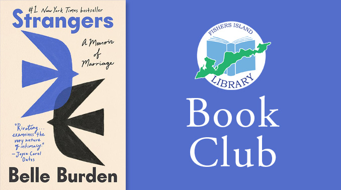Spring Hours: Mon, Wed, Fri 1-5pm | Tues, Thurs 1-7pm Sat 9am-12pm Sunday Closed unless for scheduled event. Upcoming Events BOOK CLUB APRIL 22: StrangersBOOK CLUB MAY 27: Happy All The Time Did you miss one of our Talks? View Recorded Talks New books at the Library as of March New kids books at the Library The Madden Garden is Ready + Waiting! Support Us! The library is a not-for-profit association that operates with the generous support of its patrons and the community. Deadline for applications is Friday, April 16. NEXT BOOK CLUB: Strangers: A Memoir of Marriage by Bella Burden Wednesday, April 22 @ 5:30pm Shaping the Next Chapter at Fishers Island Library PLEASE NOTE: The WiFi available to library patrons requires a password. It is prominently posted when you get there.